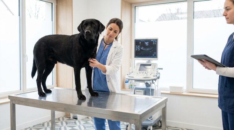 Les doigts s’enfoncent alors dans le ventre souple du patient. Cette palpation de l’abdomen s’assure qu’aucun organe corpulent ni masse douteuse n’occupe le terrain intestinal. Immédiatement après, l’examen des articulations plie et déplie les pattes pour anticiper l’arthrose, véritable rouille articulaire des vieux jours. Enfin, chez le mâle entier, un rapide passage en revue clôt la partie technique ; l’examen des testicules garantit une conformation normale, sans anomalie hormonale en vue.