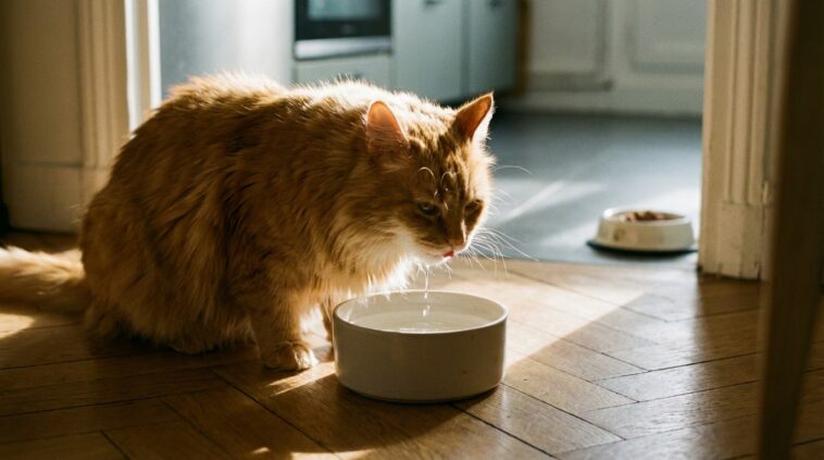 Observer un chat renifler de façon méprisante son bol d’eau flambant neuf, pourtant positionné juste à côté de ses croquettes premium, laisse souvent les propriétaires perplexes. L’explication est pourtant d’une rationalité absolue. Dans la nature hostile d’antan, un animal fraîchement chassé représente un risque sanitaire critique. Le sang et les viscères d’une proie risquent immanquablement de polluer les flaques ou les ruisseaux à proximité. Instinctivement, le chat se révèle biologiquement programmé pour ne jamais s’abreuver sur le lieu même de son repas. L’eau proche de la nourriture est irrémédiablement perçue comme un bouillon de culture mortel ou, au mieux, impropre à la consommation.